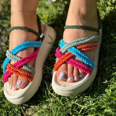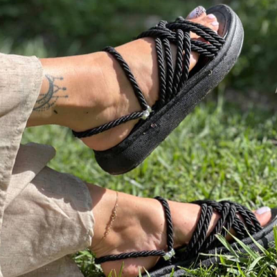 در برخی مدلها، بندهای کنفی به صورت ضربدری یا گرهای طراحی شدهاند که هم جلوهای خاص دارند و هم به فیت شدن بهتر صندل روی پا کمک میکنند. همین موضوع باعث میشود که این صندلها علاوهبر زیبایی، عملکرد خوبی نیز داشته باشند.