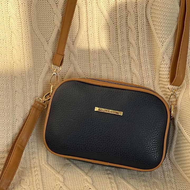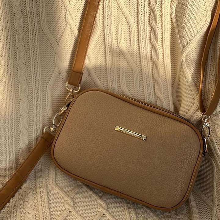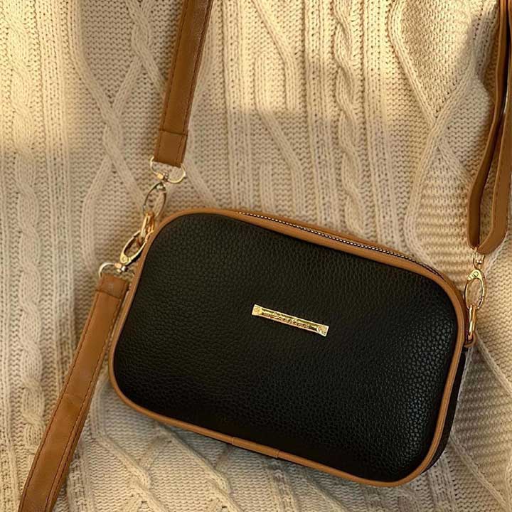 این کیف همچنین دارای دو زیپ است که فضای کافی برای نگهداری موبایل، کارتها و وسایل کوچک را فراهم میکند و دسترسی سریع و امن را تضمین مینماید. جلوی کیف با سگگ فلزی ساده تزیین شده است که به طراحی ظریف و لوکس بودن آن میافزاید. بدنه مقاوم و سبک این کیف، آن را برای استفاده روزمره در محیطهای کاری، تفریحات و سفرهای کوتاه مناسب میسازد.
