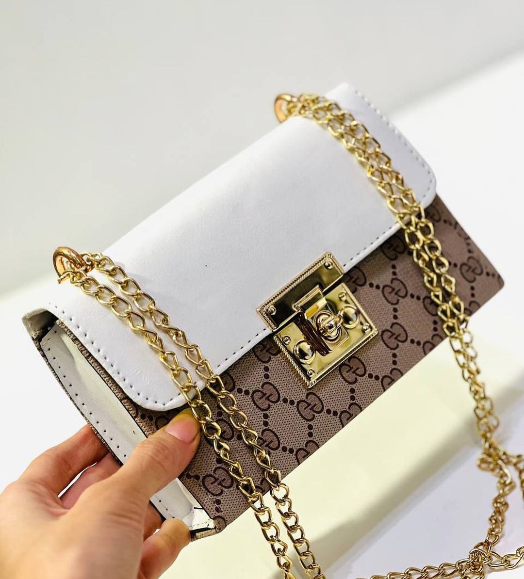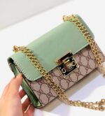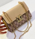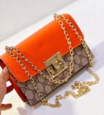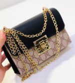 طراح این کیف، بند بلند زنجیری قابل تنظیمی در نظر گرفته که ترکیب فلز و چرم را با ظرافت کنار هم قرار میدهد. شما میتوانید این بند را به اندازه دلخواه تنظیم کنید و کیف را به صورت دوشی یا کراسبادی استفاده کنید. این طراحی، حمل کیف را بسیار راحت کرده و در عین حال، جلوهای شیک و لوکس به آن بخشیده است.